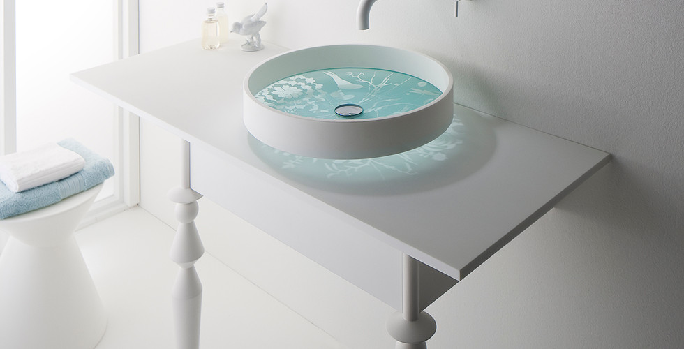 INTRICATELY-PATTERNED FLOATING SINK Kari SheaOct 1, 20201 min readComprised of etched glass and solid surface, the Motif Basin comes in three different finishes: Pebble, Kaleidoscope, and Forest Glass. Designed by Thomas Coward for Omvivo.